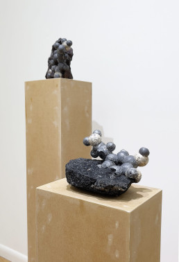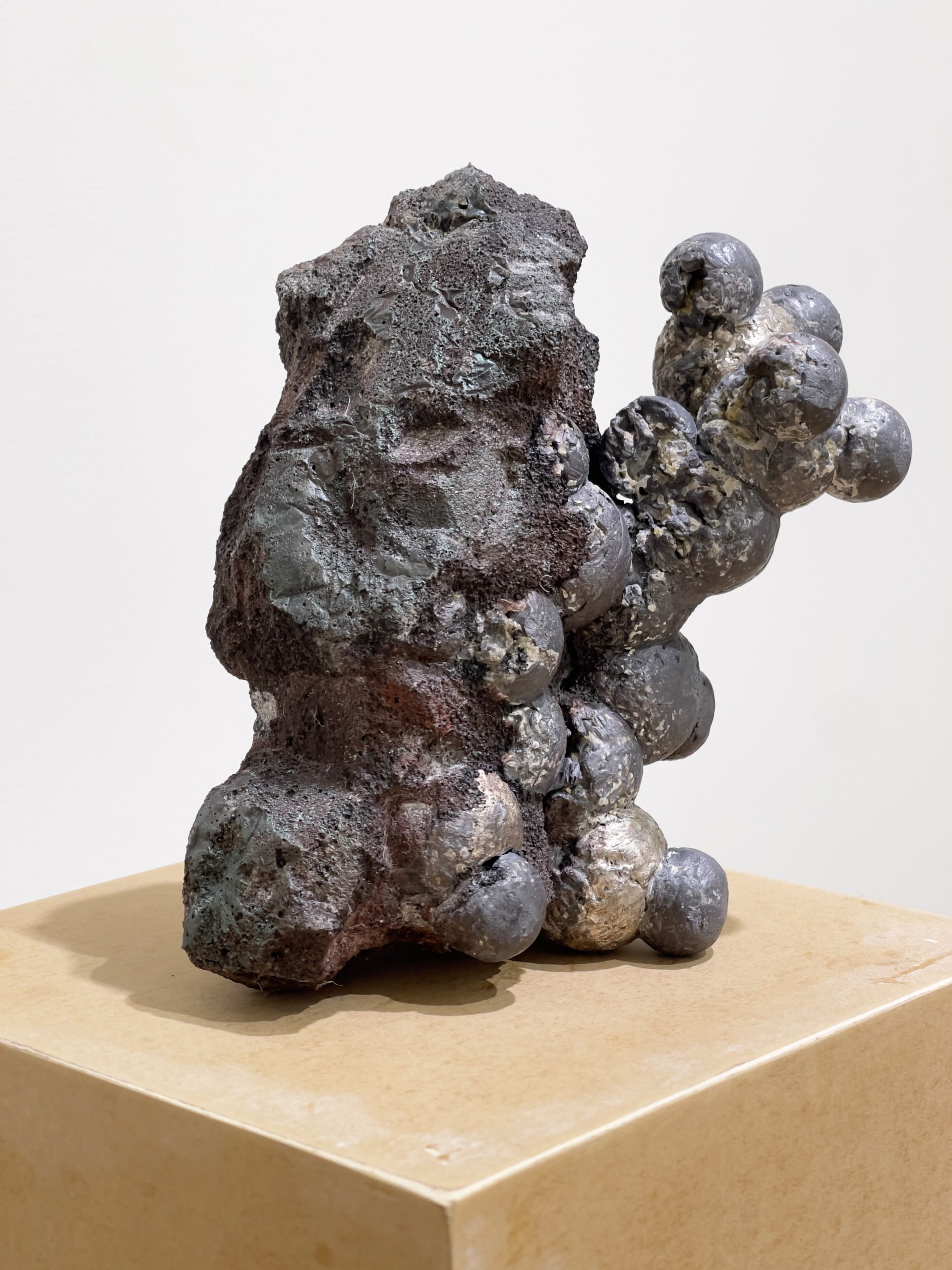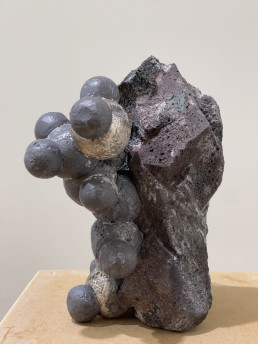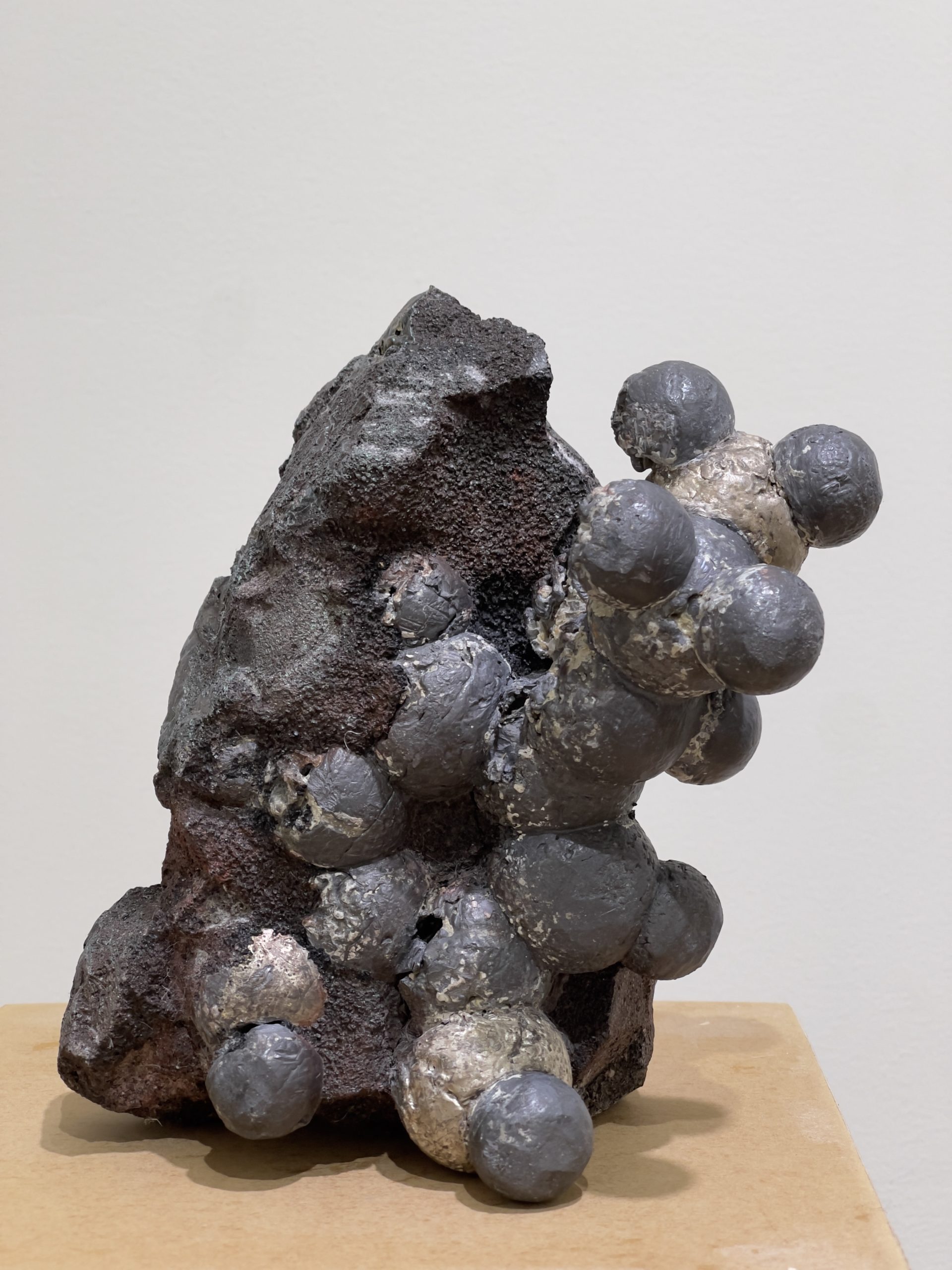 These sculptures consists of a cast lead and partially silver leafed dopamine molecule embedded in a matrix to resemble something mined from the ground. Mining is digging into the earth through layers of the distant past in anticipation of locating a desired substance to be used in the present. Dopamine is a hormone and neurotransmitter that signals the desirability or averseness of an outcome which propels us toward the outcome. The title comes from a Lacanian term that refers to ”the constant sense we have that something is lacking from our lives. We are always searching for fullfillment but whenever we achieve the goal, there is always something more we desire; we cannot pinpoint it but we know it is there.”